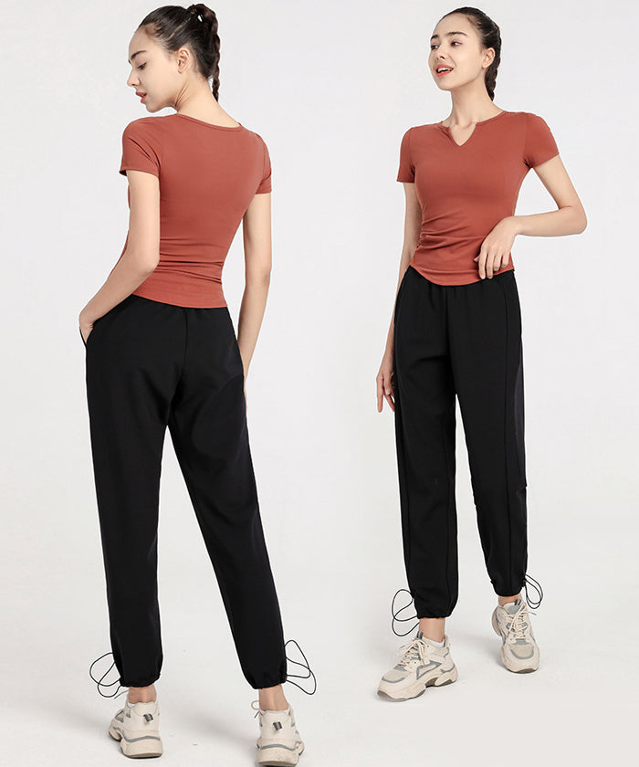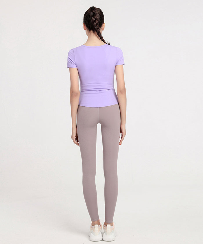 ヨガトップス 半袖 新作 タイト スポーツトップス スリム フィットネスウェア トレーニング ジム 速乾性 ヨガTシャツ ピラティス ヨガ デザインVネック