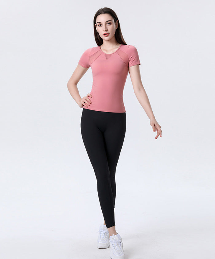 ヨガトップス 半袖 胸パッド付き スポーツTシャツ ランニングウェア フィットネス ジムウェア 吸汗 速乾性 メッシュ 通気性 トップス