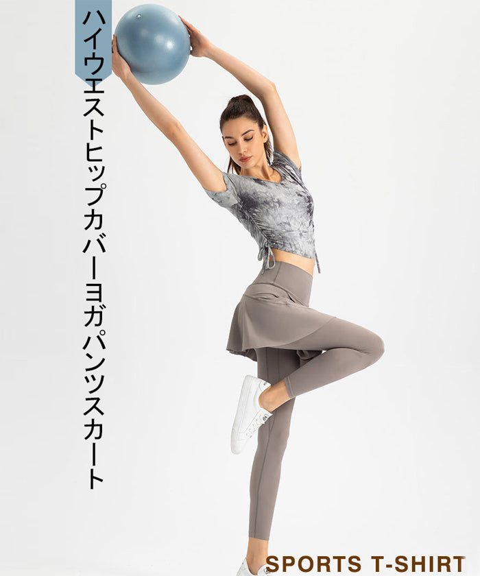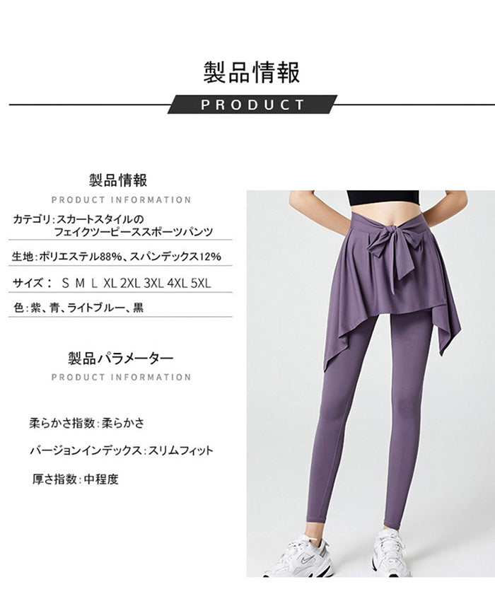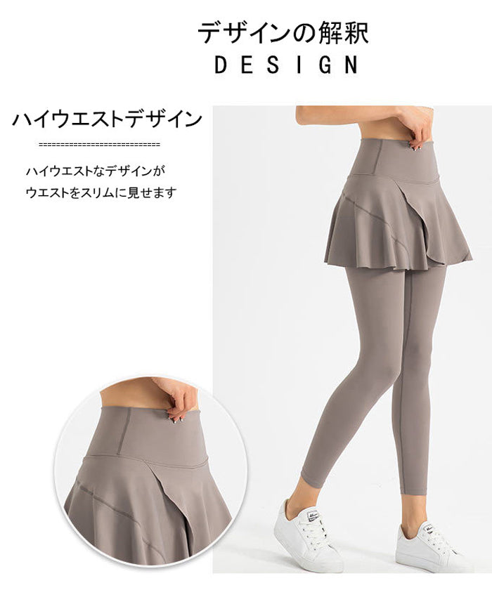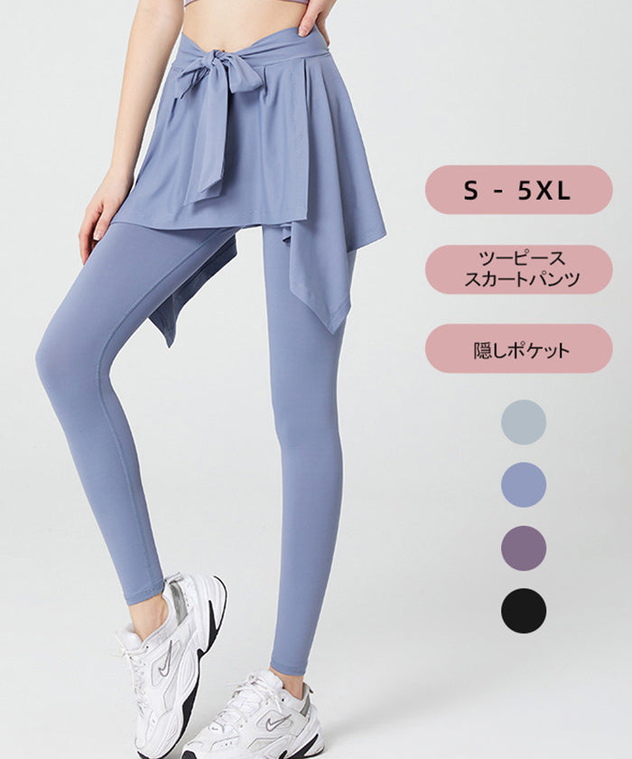 ヨガレギンス フェイクスカート ラージサイズ フィットネス 速乾性 ポケット付き ハイウエスト ヒップカバー ランニング スポーツパンツ ピラティス ジムウェア