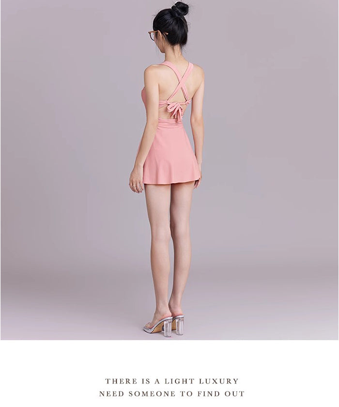 水着 レディース ワンピース セクシー バックレス スカート ホルター ネック お腹 カバー 大人水着