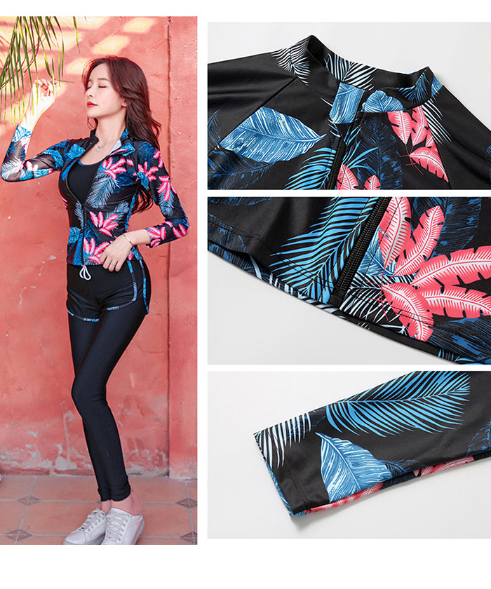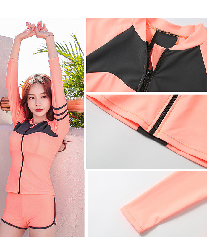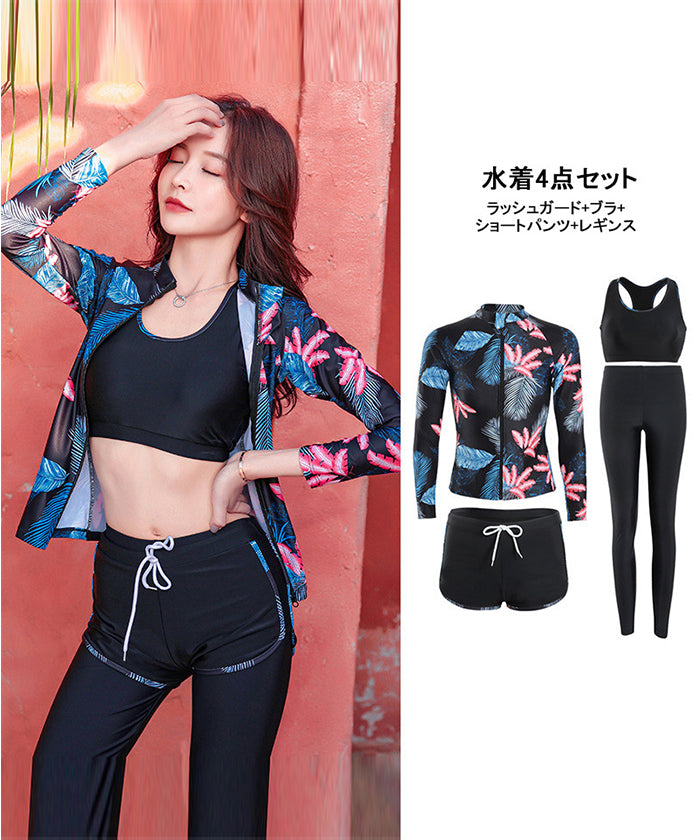 レディース水着 大きいサイズ ワンピース 体型カバー ジム プール フィットネス 可愛い おしゃれ 20代 30代 40代 長袖 パンツタイプ スリム ウェット スーツ 女性 スリム フィット