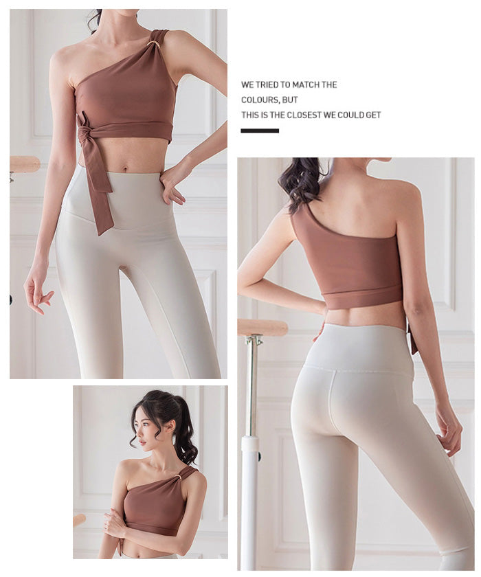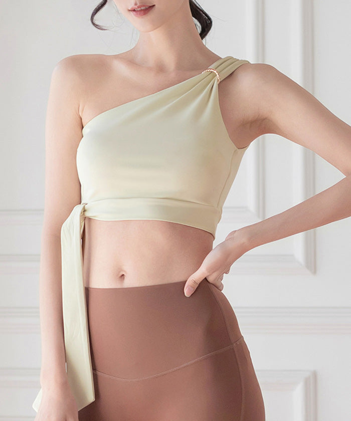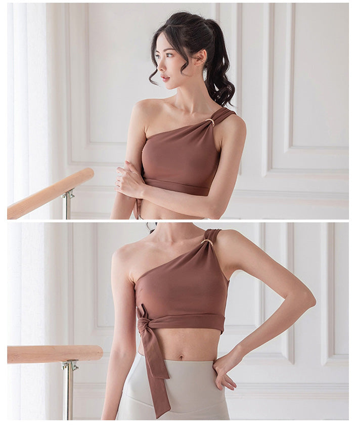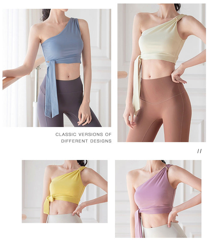 レディース スポーツウェア ヨガウェア 丈短め セクシー ヨガウェア ワンショルダースポーツブラ フィットネスベスト クロップトップ 高伸縮性 レディーススタイル 美背中 ストラップ