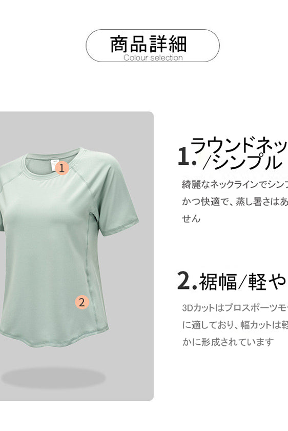 レディース スポーツ Tシャツ ヨガ フィットネス Tシャツ 半袖 通気性 ゆったり 速乾 ホットヨガ ピラティス フィットネスウェア ランニングウェア ジム ウォーキング テニス