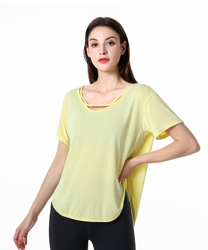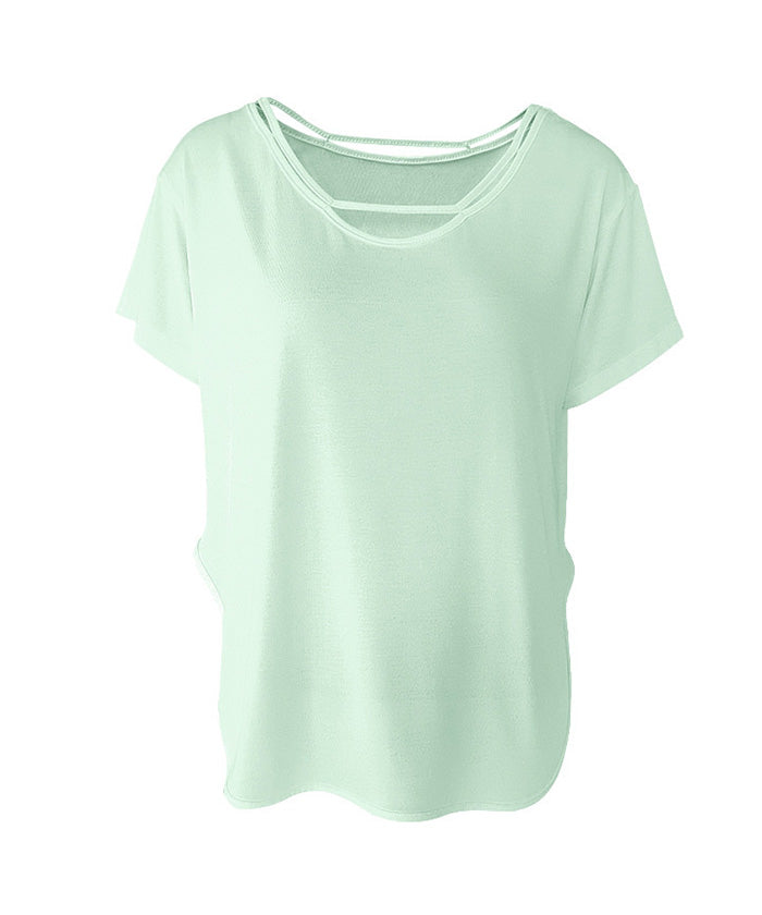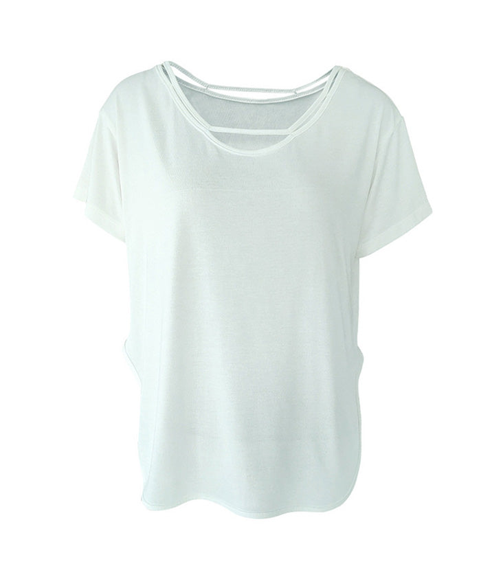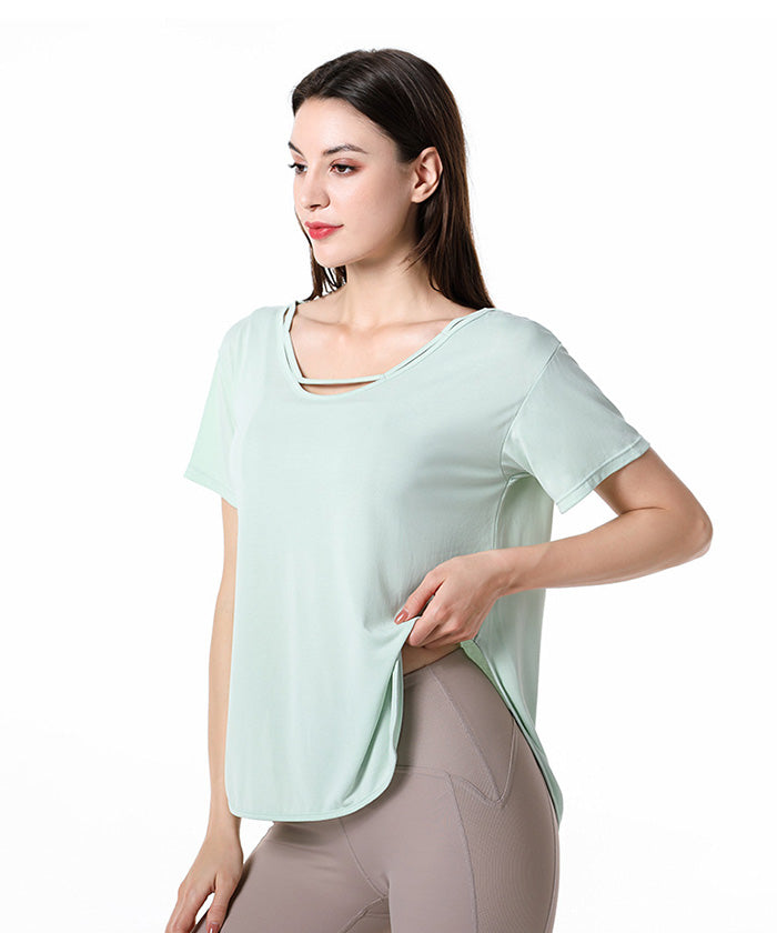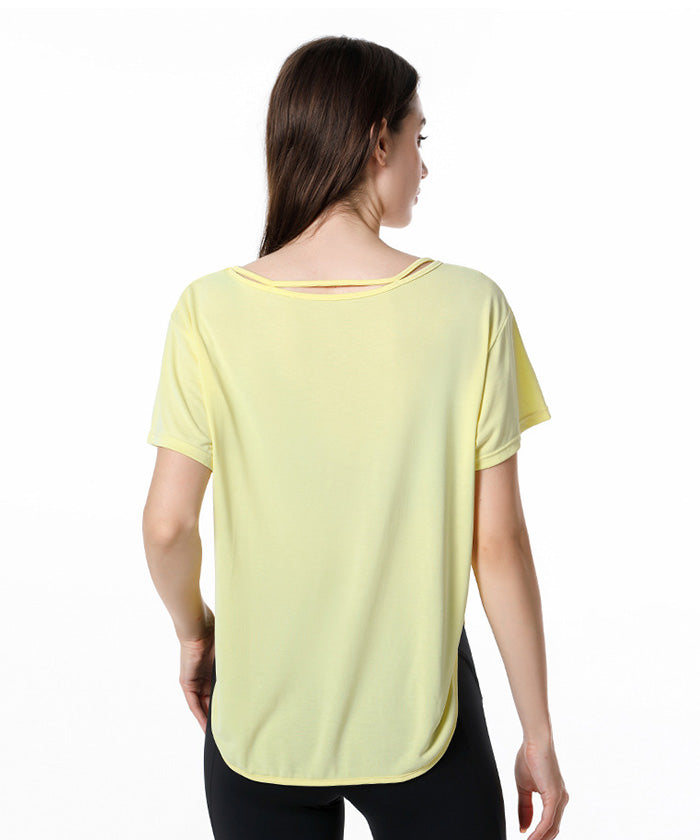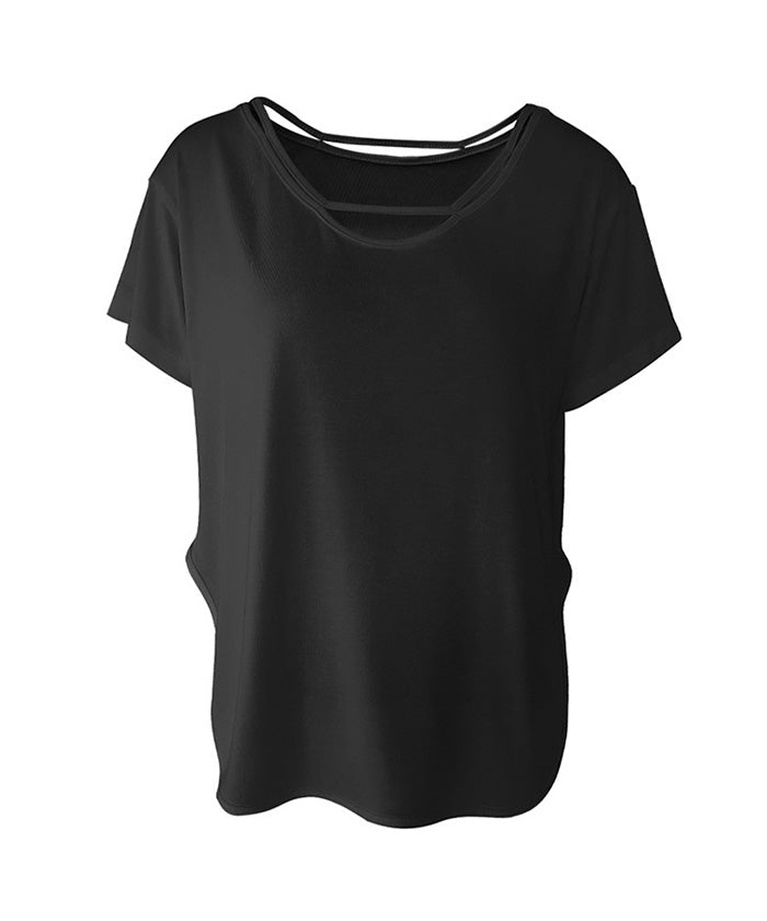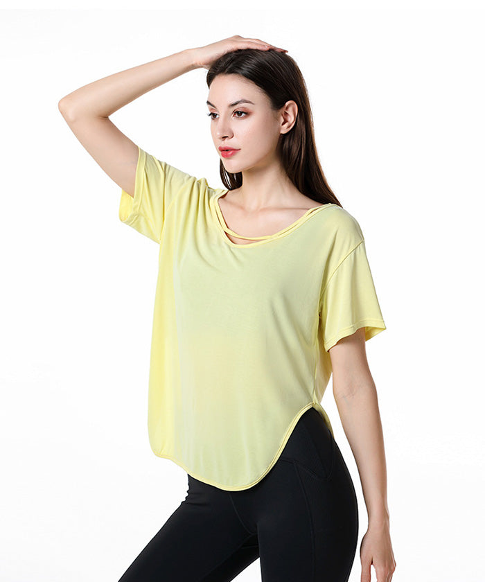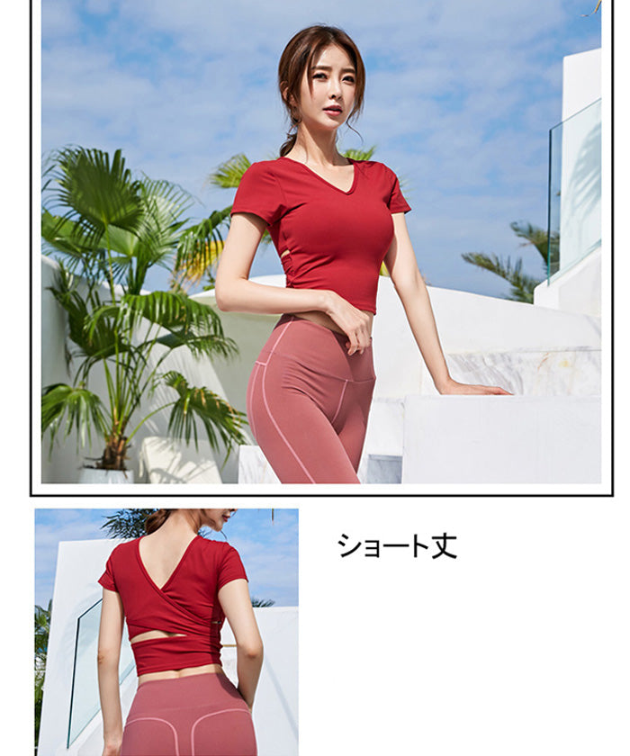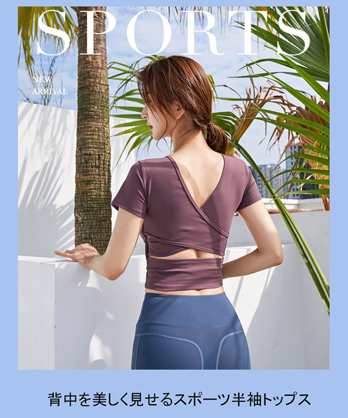 半袖 ヨガトップス ショート丈 スポーツウェア フィットネスウェア シンプル 束腰クロス 美背中 薄手 ヨガ服 スリムフィット ピラティス