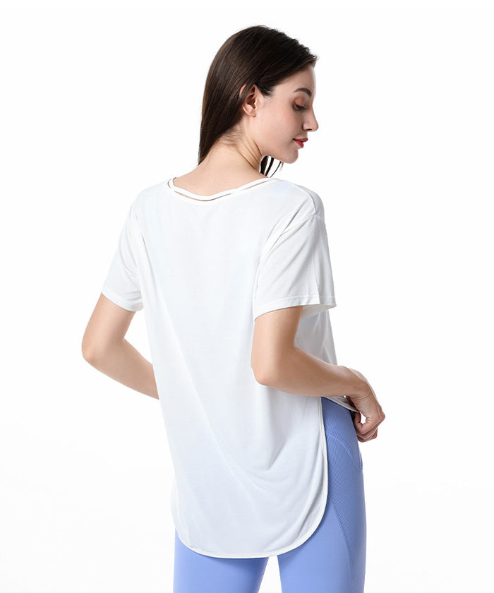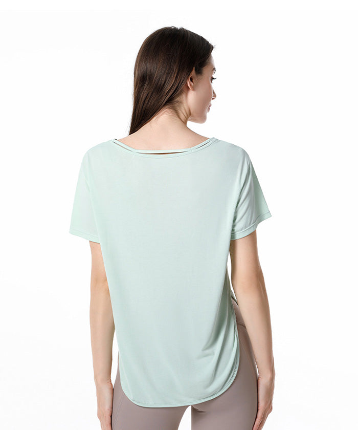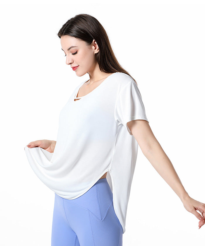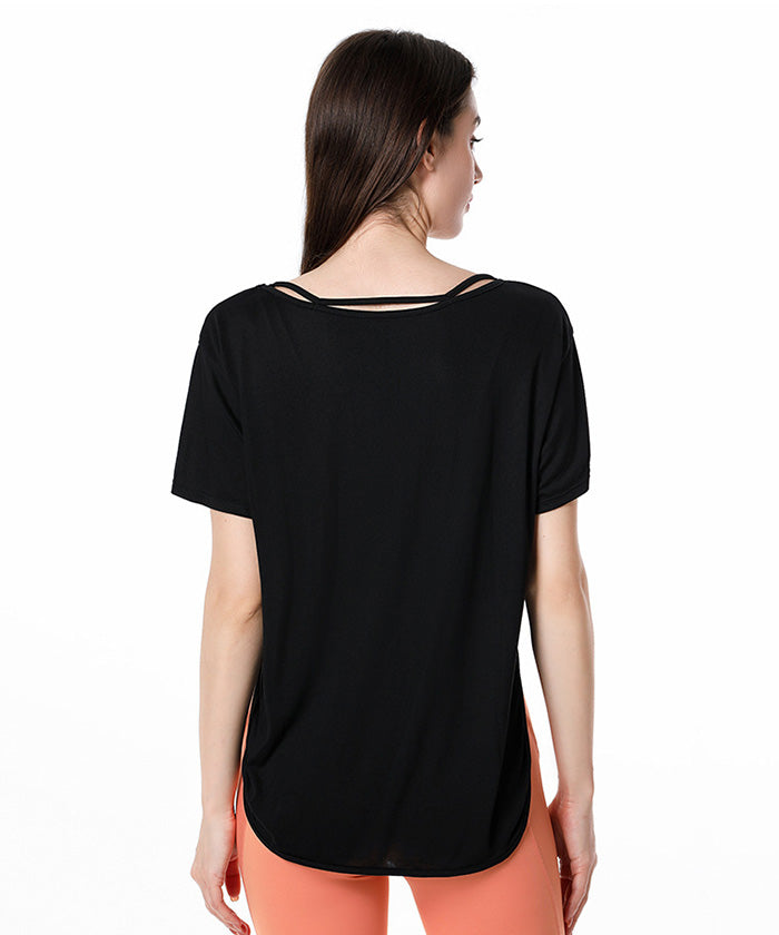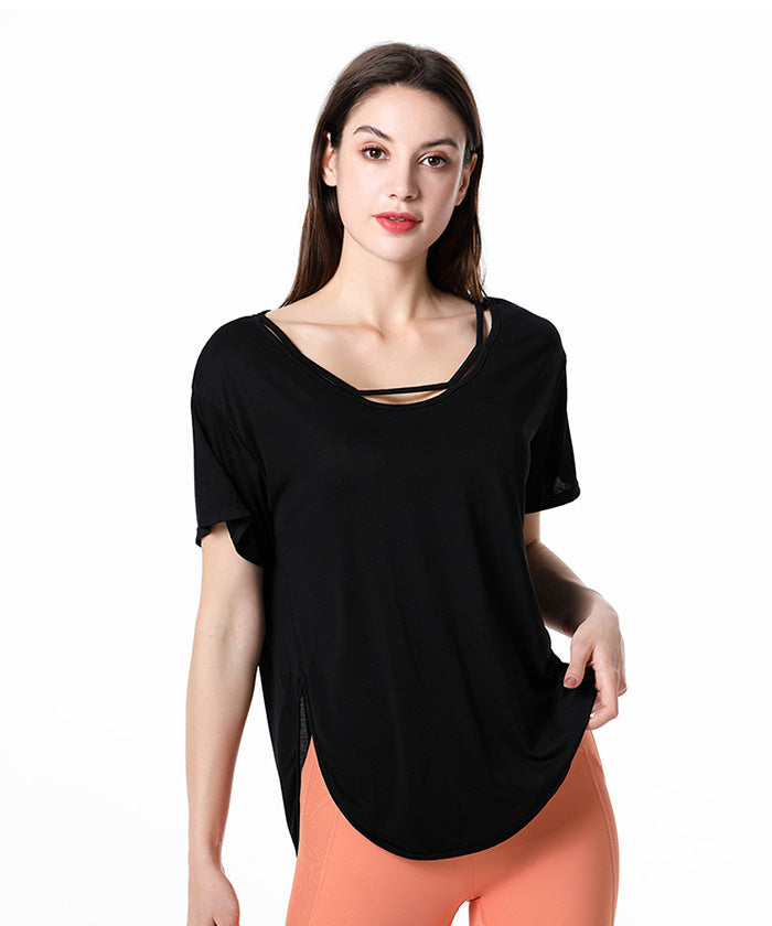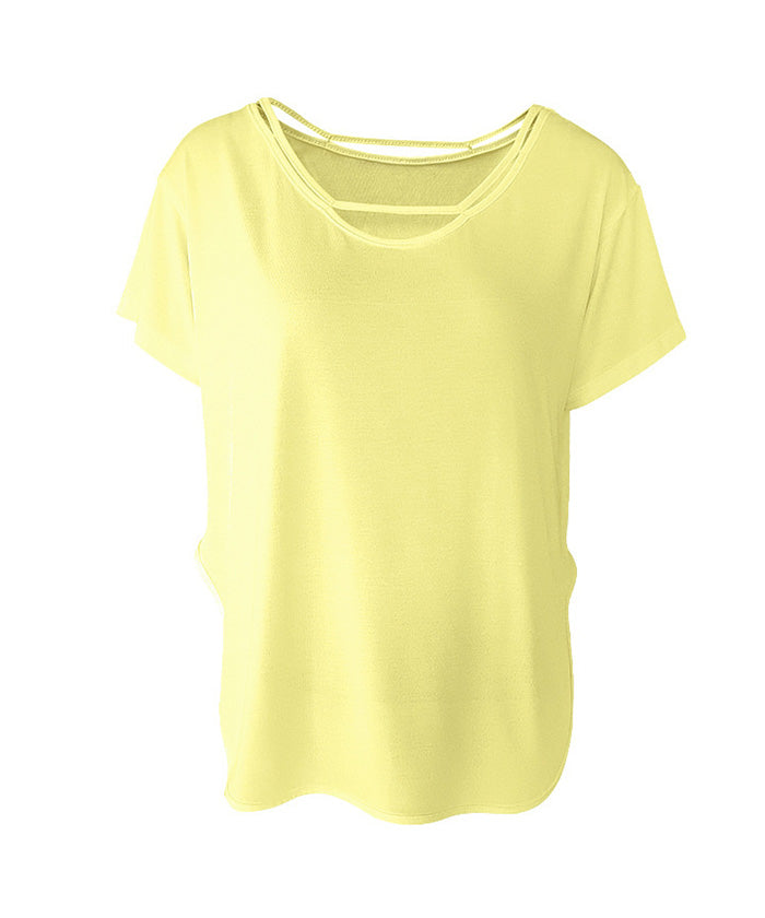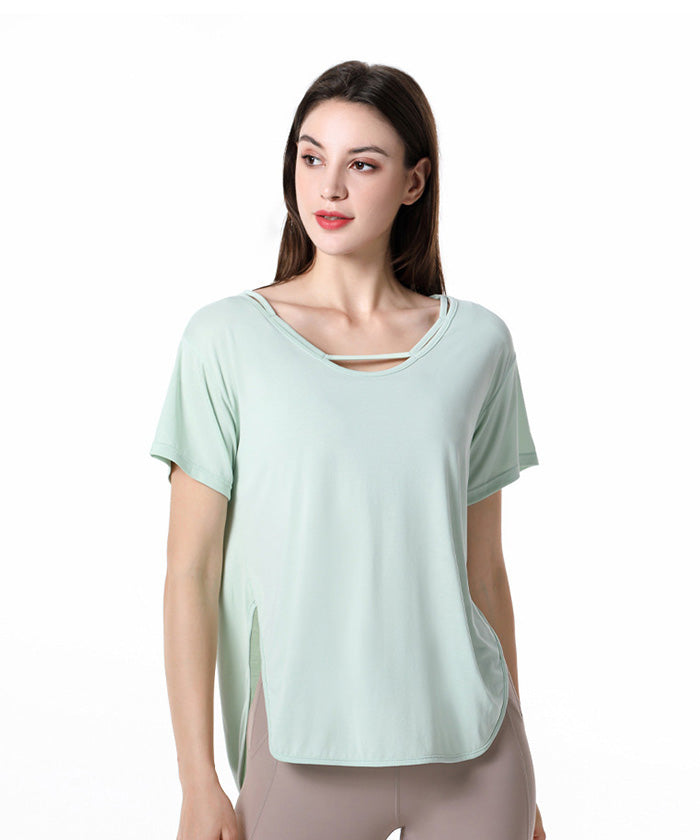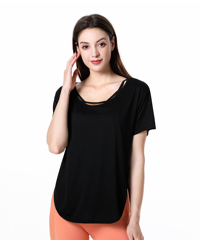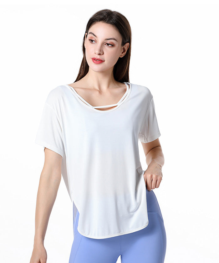 半袖 ヨガトップス ショート丈 スポーツウェア フィットネスウェア シンプル 束腰クロス 美背中 薄手 ヨガ服 スリムフィット ピラティス
