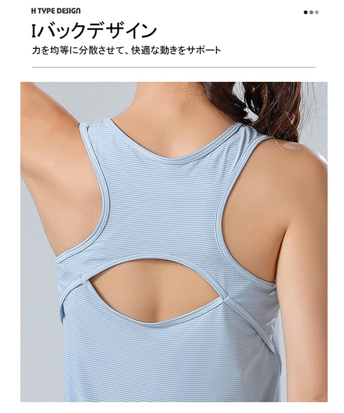 春夏 スポーツトップス 袖なし タンクトップ スポーツベスト ゆったり ストライプ ヨガベスト 速乾性 ジム フィットネスウェア 運動