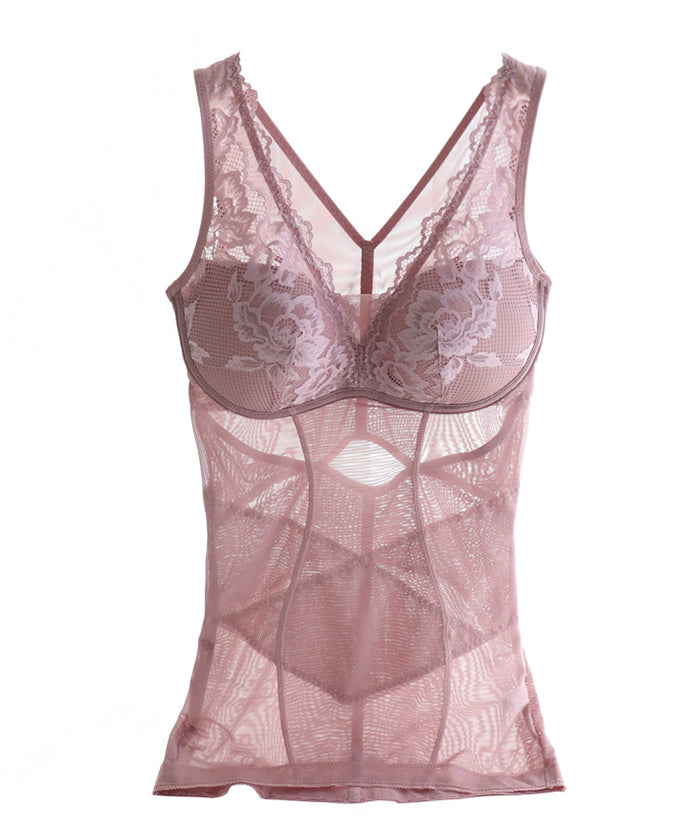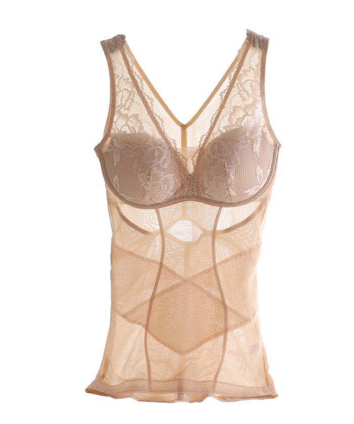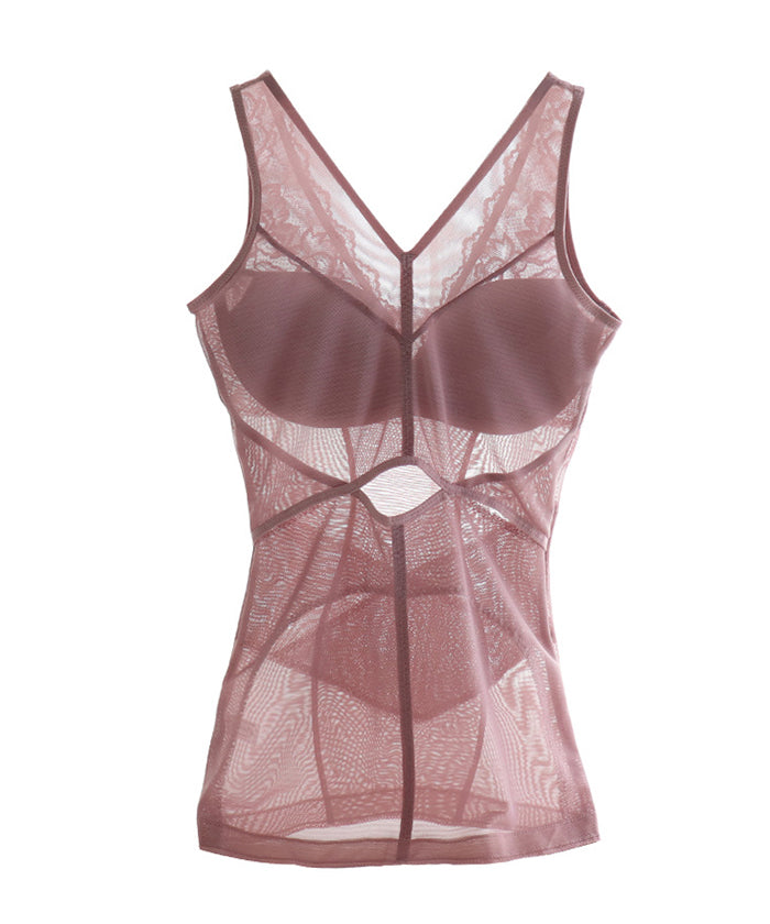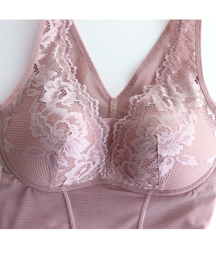 補正下着 シームレスプッシュアップ、スリムフィットオールインワンベスト、メッシュスプライシング、かぎ針編みレース、フェミニンな気質に満ち、ブラジャーを着用する必要がなく、内側または外側で着用可能。