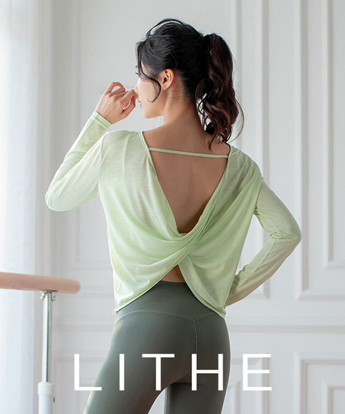長袖ヨガトップ、背中の開いた短いスポーツウェア、フィットネスウェア、ダンスウェア、シンプルなクロスオーバーバック美しい薄いヨガウェア、痩身ピラティス