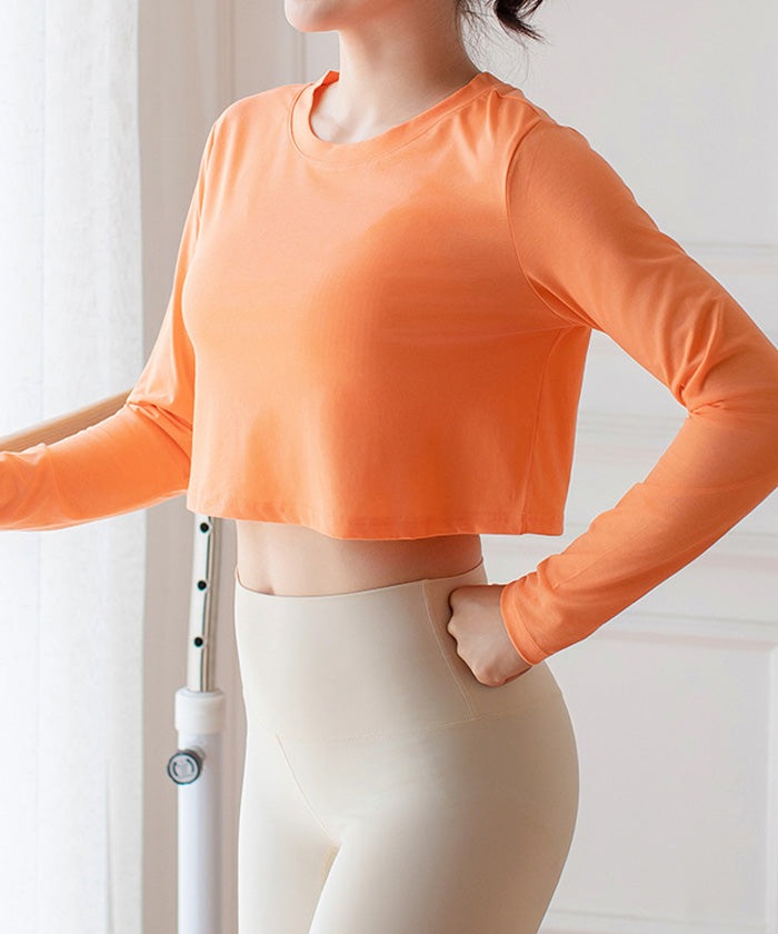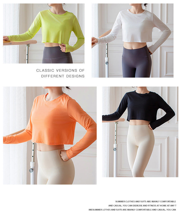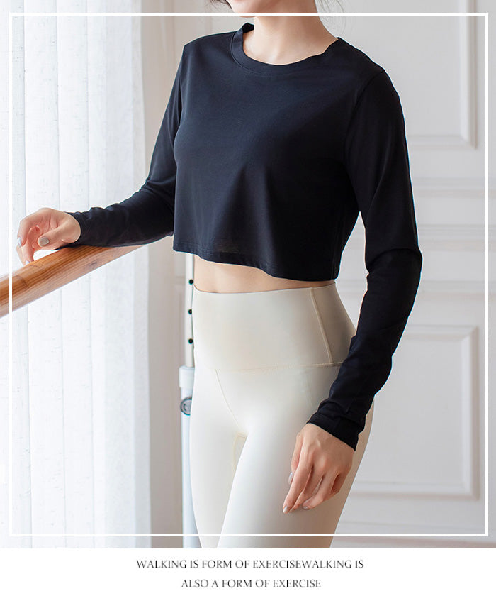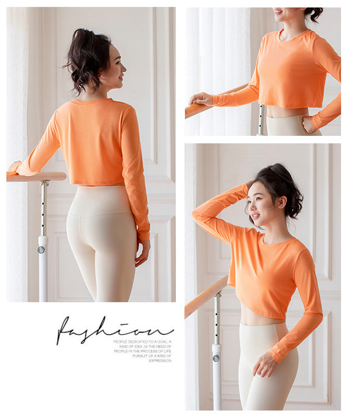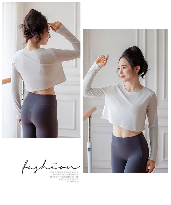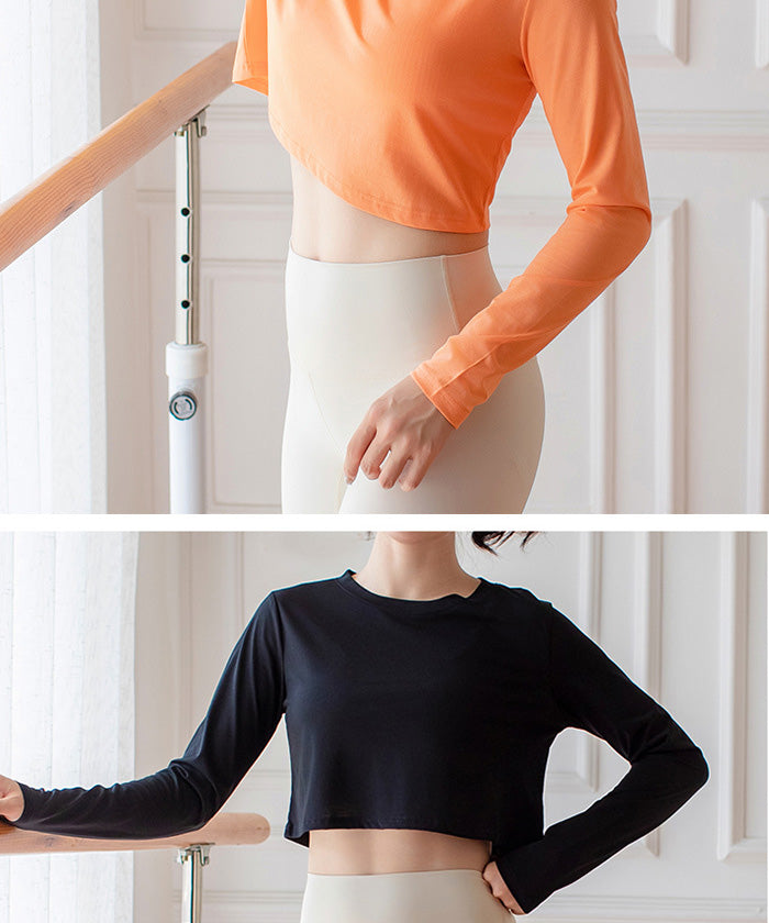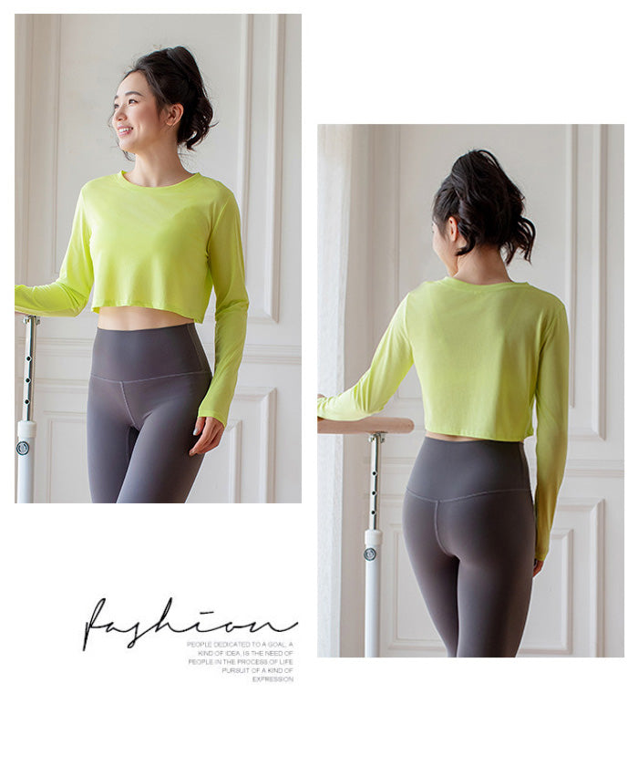 長袖ヨガトップ、背中の開いた短いスポーツウェア、フィットネスウェア、ダンスウェア、シンプルなクロスオーバーバック美しい薄いヨガウェア、痩身ピラティス